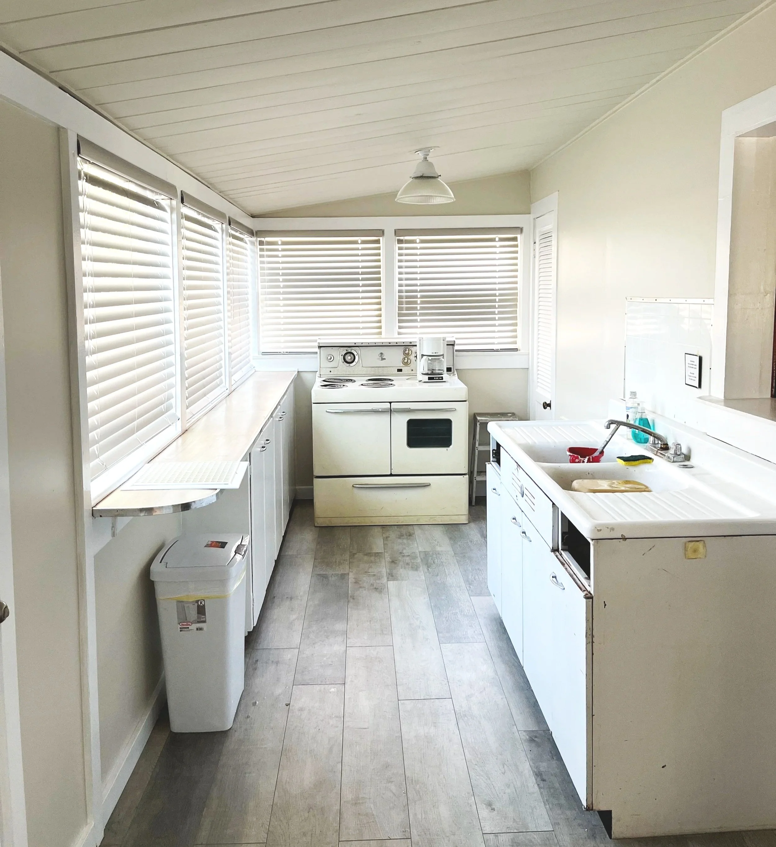 Kitchen with double paned windows, new floor, new ceiling.