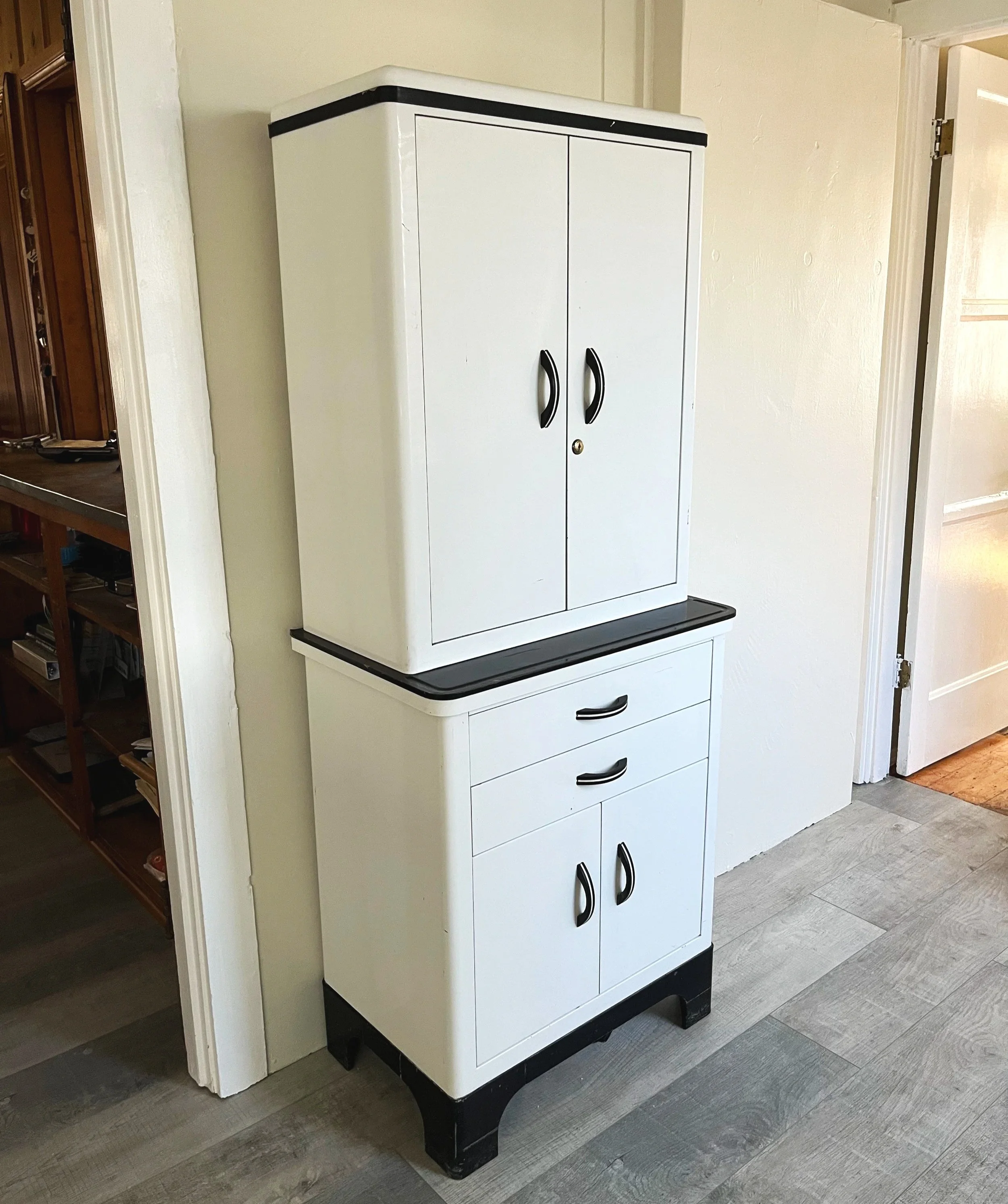 New vintage cabinets located in the kitchen